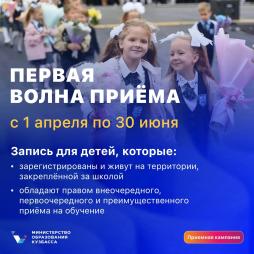 До приёмной кампании в первый класс остались считанные дни????️ ✅Первая волна приёма в Кузбассе начнётся 1 апреля и продлится до 30 июня. В карточках собрали для вас всю полезную информацию. Сохраняйте, чтобы не потерять. #ПолезноЗнать